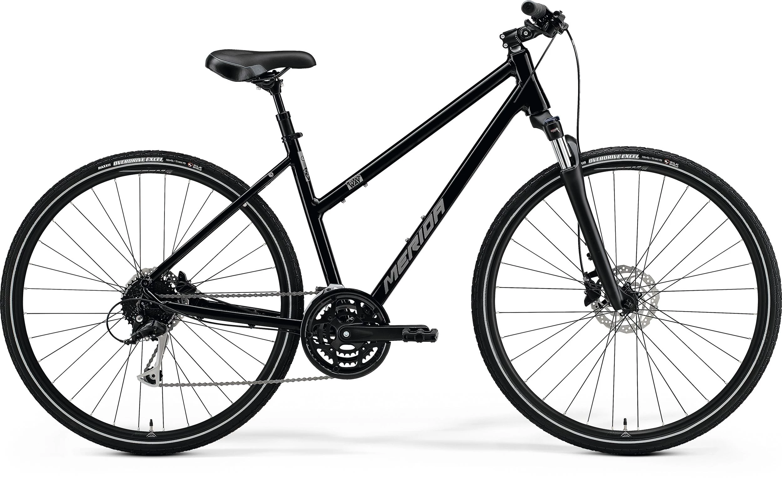 Merida Merida Crossway 100 Dam Svart. Hybrid med 28-tums hjul, -vxl, aluminiumram och hydrauliska skivbromsar.