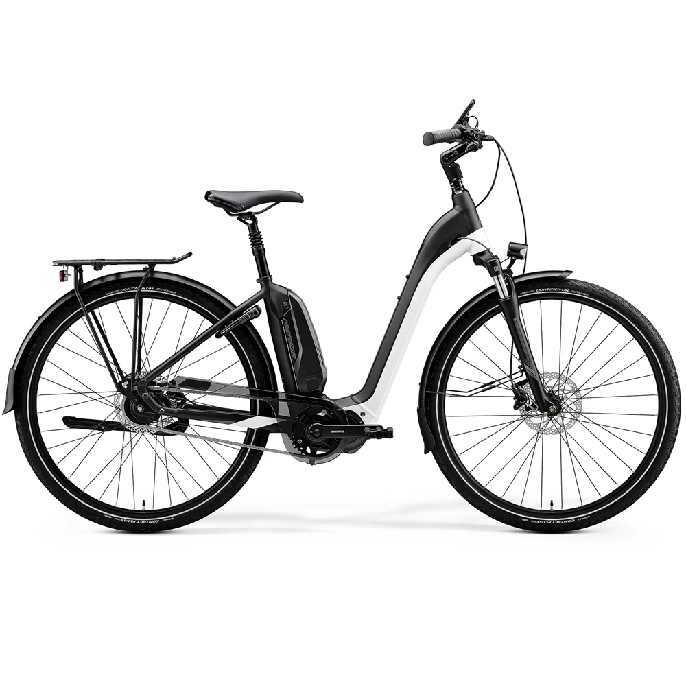 Merida eSpresso City 700 EQ Svart/Vit. Elcykel med 28-tums hjul, 5-vxl, aluminiumram och hydrauliska skivbromsar.